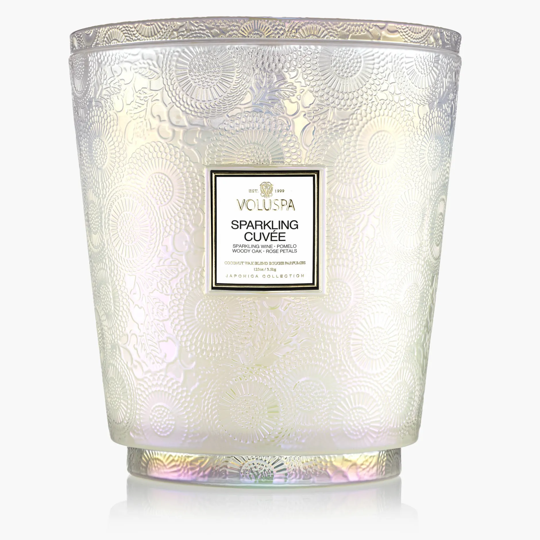 Pop a bottle of Voluspa’s finest blend, it’s time to celebrate! A mix of beautiful aromatic complexity, Sparkling Cuvée opens with vivacious fruit tones of Sparkling Wine, Pomelo and Red Currant. The effervescence of Sparkling Wine is the heart of the celebration, with bubbles cascading to the surface, dancing and mingling with juicy Nectarine and Bulgarian Rose Petals. A velvety, smooth finish of Woody Oak serves as the perfect stage for this aromatic affair. Raise a glass of Sparkling Cuvée, your olfactory aperitif for every unforgettable occasion.