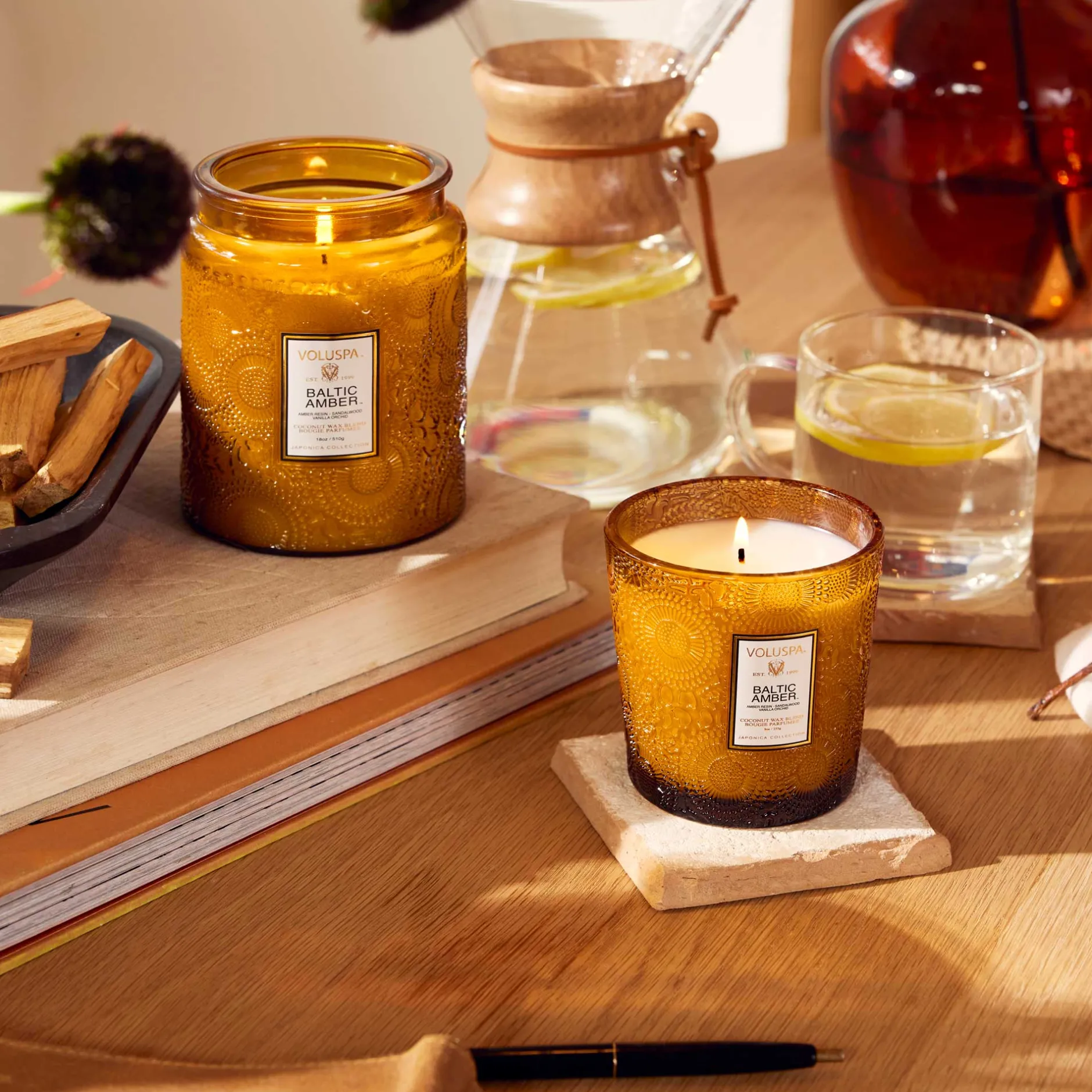 Warm up the ambiance with a sensual soirée of honeyed Amber Resin, velvety Woods and the rich incense of smoldering Vanilla Orchid. Bask in the swoon-worthy golden glow that radiates lingering warmth. Fall under Baltic Ambers spell and prepare to be enchanted…