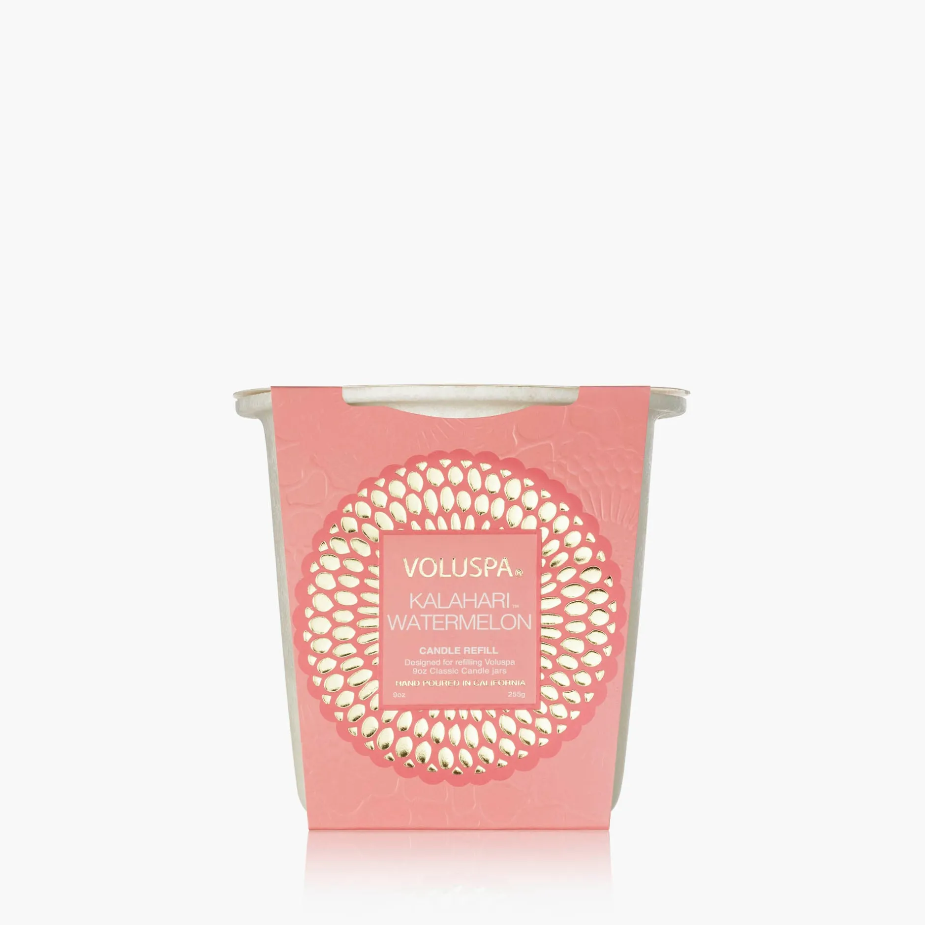 Curb your olfactive appetite for your flourishing fragrance addiction. Invite an additional 60 hours of your beloved 9oz Voluspa fragrance without the frills. After your candles final flame, go straight to the source, simply drop in the coconut wax Candle Refill. We’ve pioneered a candle refill that leaves no trace. Our custom designed refill cups are made from 3 simple ingredients: starch, fibers and water— making it 100% biodegradable. Outer Packaging is 100% recyclable.