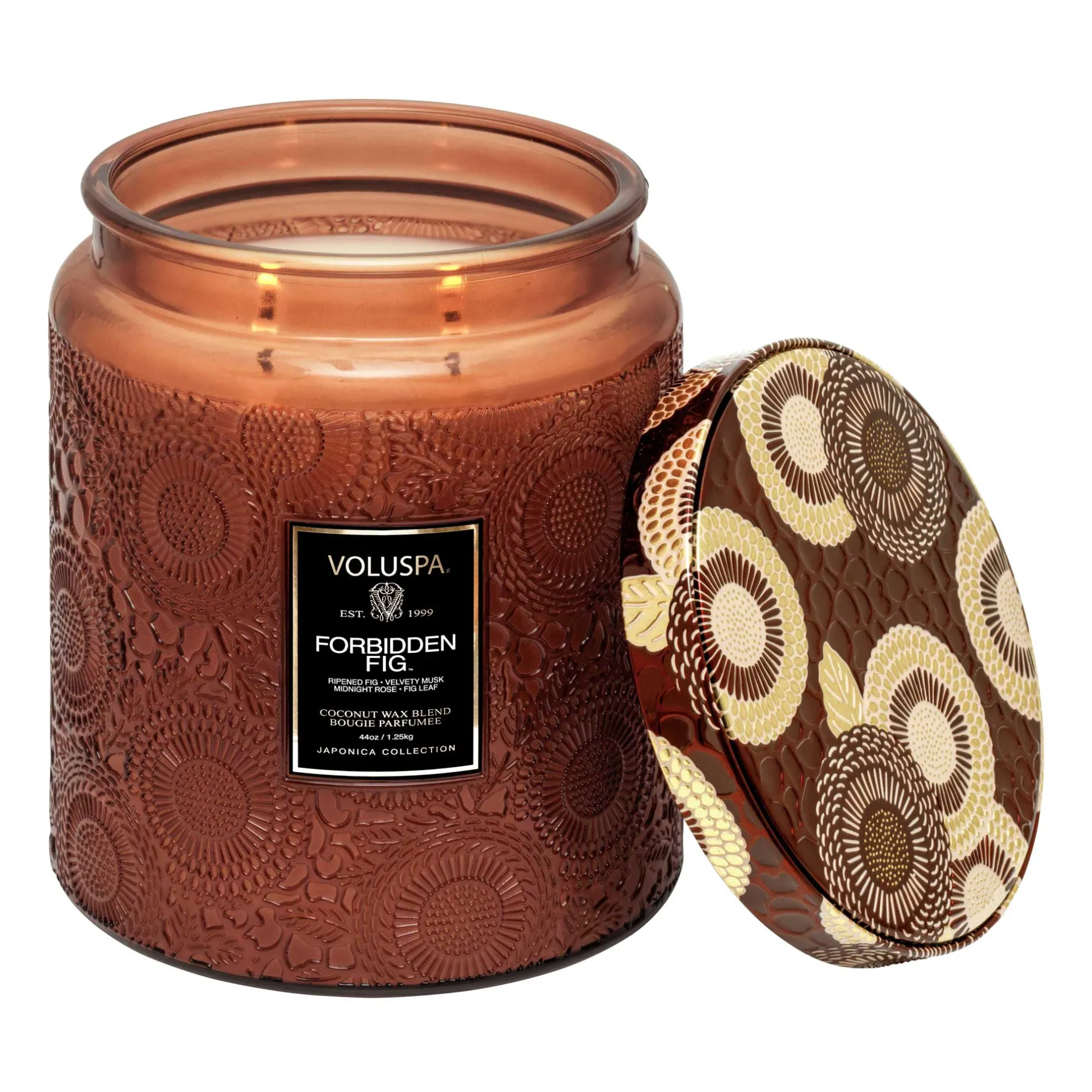 Voluspa’s unique coconut wax blend is housed in a 44 oz. glass vessel adorned in Japonica pattern and is topped with a metal lid that keeps the candle dust-free when not in use. The multiple wicks allow you to enjoy fragrance throw for 140 hours. Our candles are handcrafted in the United States and feature our proprietary, clean-burning coconut wax blend and natural wicks. Our products are free of phthalates, parabens and sulfates and are never tested on animals. Up-cycle this best seller into a keepsake after the last burn.