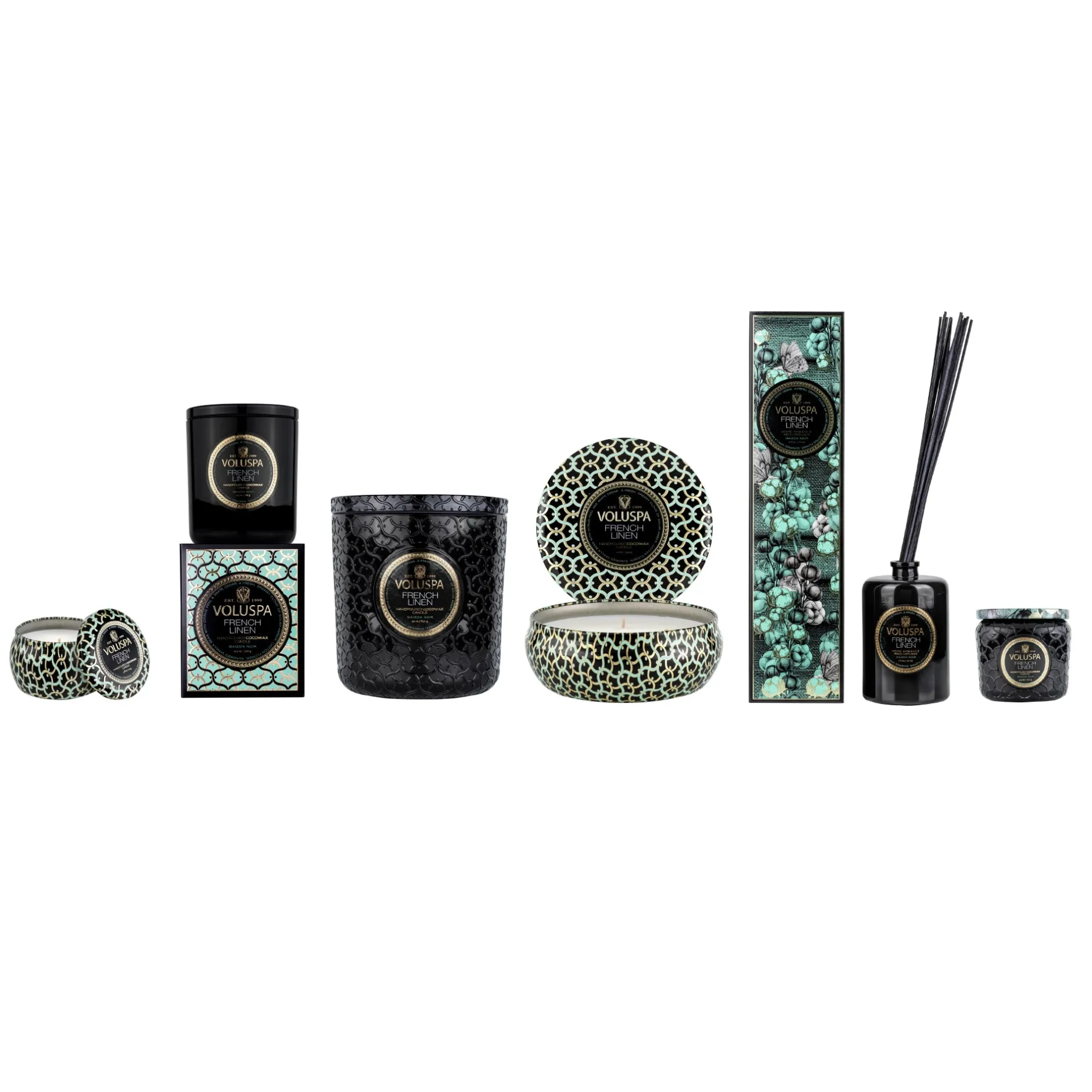 Voluspa’s unique coconut wax blend is housed in a 4.5 oz. glass and topped with a decorated tin lid that keeps the candle dust-free when not in use. The single wick allows you to enjoy fragrance throw for 35 hours. Our candles are handcrafted in the United States and feature our proprietary, clean-burning coconut wax blend and natural wicks. Our products are free of phthalates, parabens, and sulfates and are never tested on animals. Up-cycle this best seller into a keepsake after the last burn.