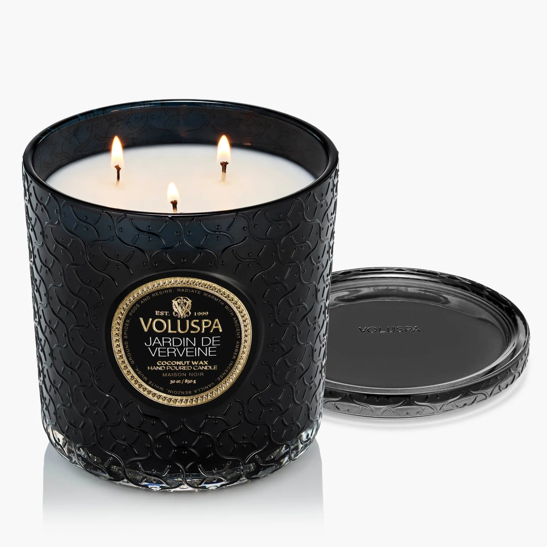 Voluspa’s unique coconut wax blend is housed in a 30 oz. glass and topped with a matching lid that keeps the candle dust-free when not in use, and doubles as a base when lit. Our three wicks allow you to enjoy fragrance throw for 80 hours. Our candles are handcrafted in the United States and feature our proprietary, clean-burning coconut wax blend and natural wicks. Our products are free of phthalates, parabens, and sulfates and are never tested on animals. Up-cycle this best seller into a keepsake after the last burn.