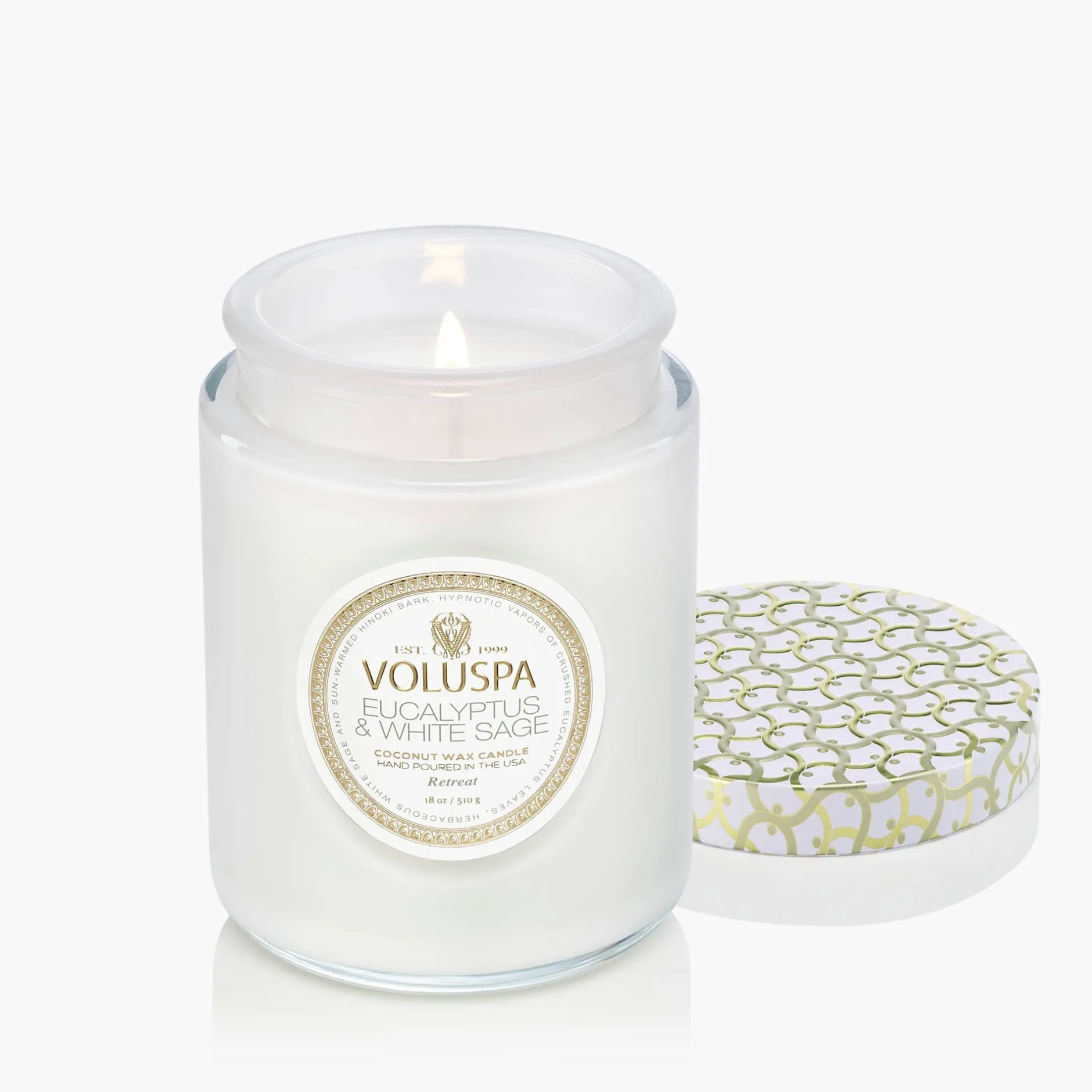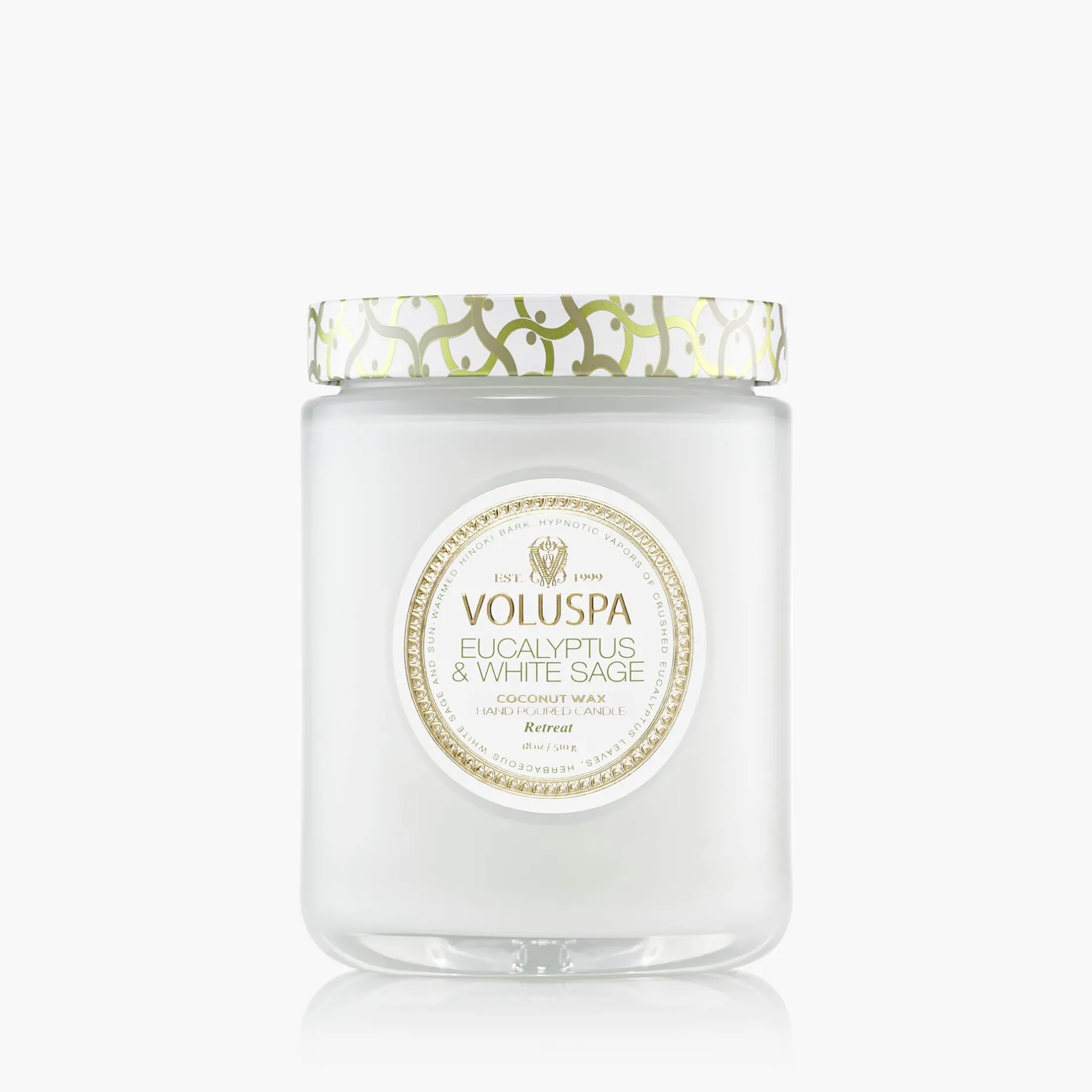 Breathe in… and out. Rejuvenate your body and soul with the hypnotic vapors of Eucalyptus and White Sage, giving way to mystical soothing properties. Let worries fade away with this aromatic sun salutation. Notes of crushed Eucalyptus leaves, Cardamom, herbaceous White Sage, and sun-warmed Hinoki Bark create a kinship of peace and vitality, illuminating feelings of renewal. Make Voluspa’s Eucalyptus & White Sage part of your daily routine. Namaste.
