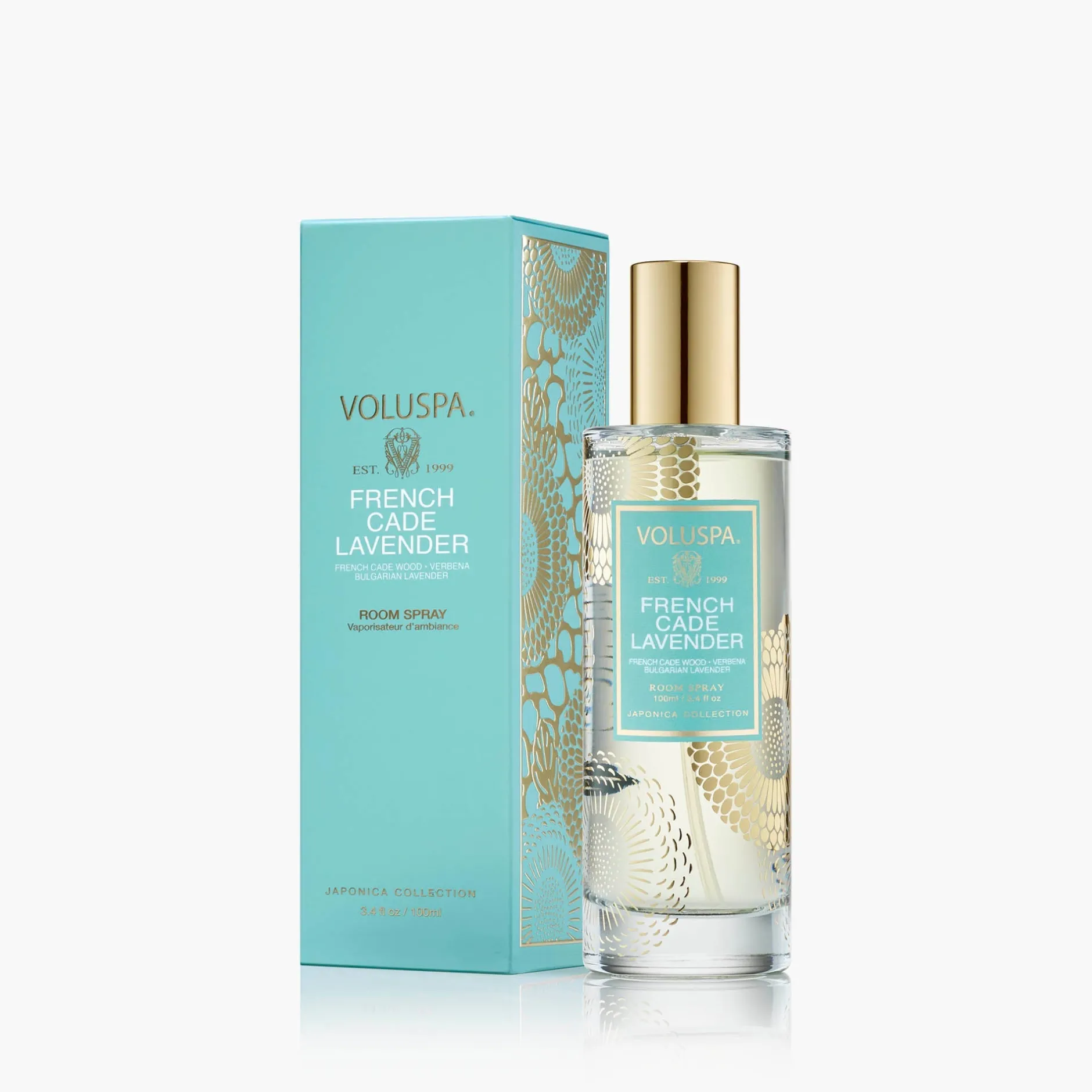 Refresh your space with Voluspa’s aromatic room spray. A burst of flameless fragrance wherever you need a lift. Our fragrant room spray is housed in a glass vessel with gold accents for a subtle pop.