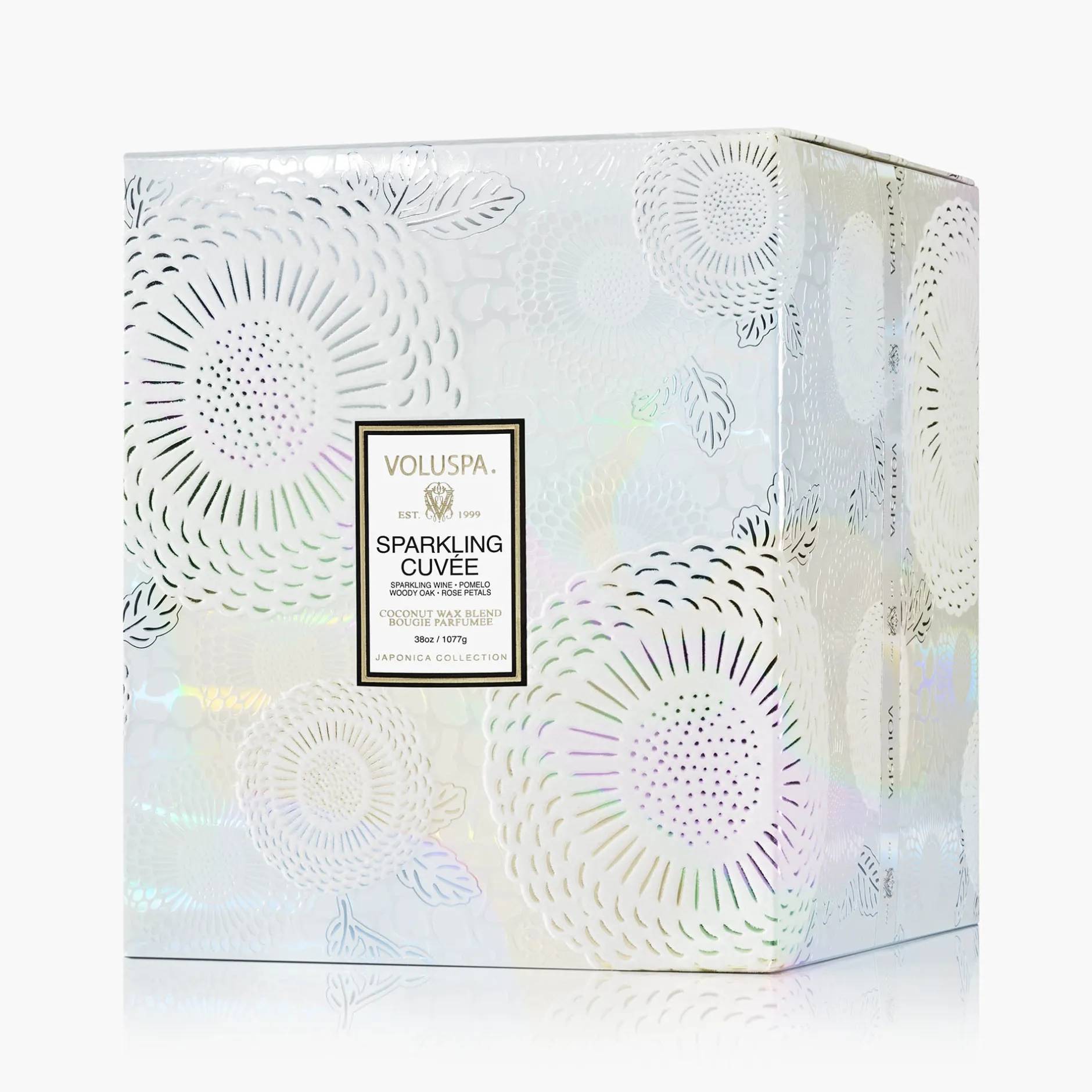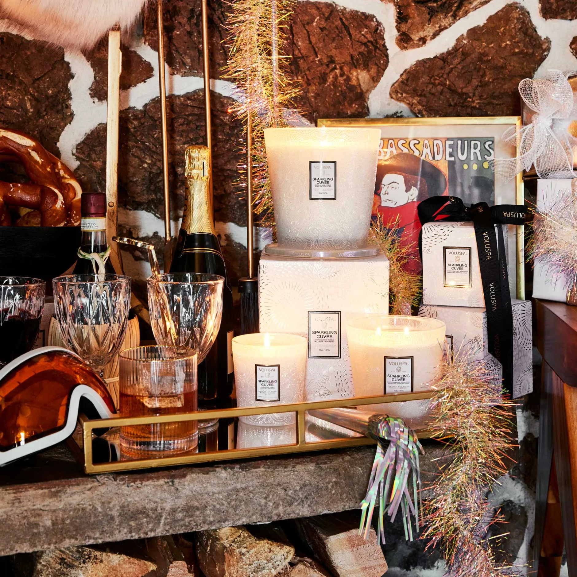 Pop a bottle of Voluspa’s finest blend, it’s time to celebrate! A mix of beautiful aromatic complexity, Sparkling Cuvée opens with vivacious fruit tones of grapefruit and pomelo. The effervescence of Sparkling Wine is the heart of the celebration, with bubbles cascading to the surface, dancing and mingling with juicy nectarine and Bulgarian rose petals. The velvety, smooth finish of barrel oak serves as the perfect stage for this aromatic affair. Raise a glass of Sparkling Cuvée, your olfactory aperitif, for every unforgettable occasion.