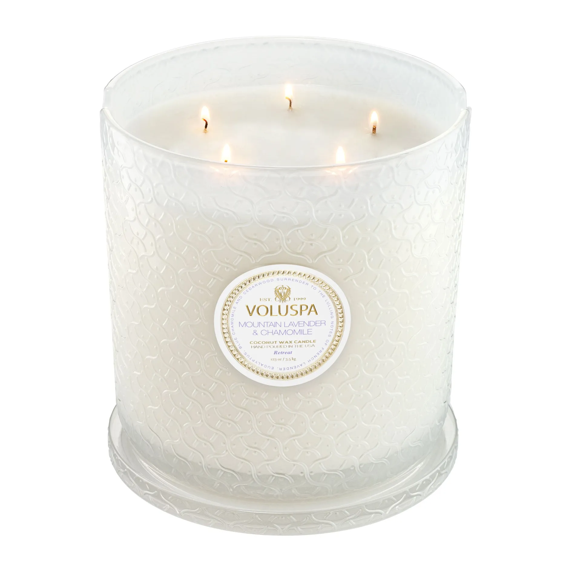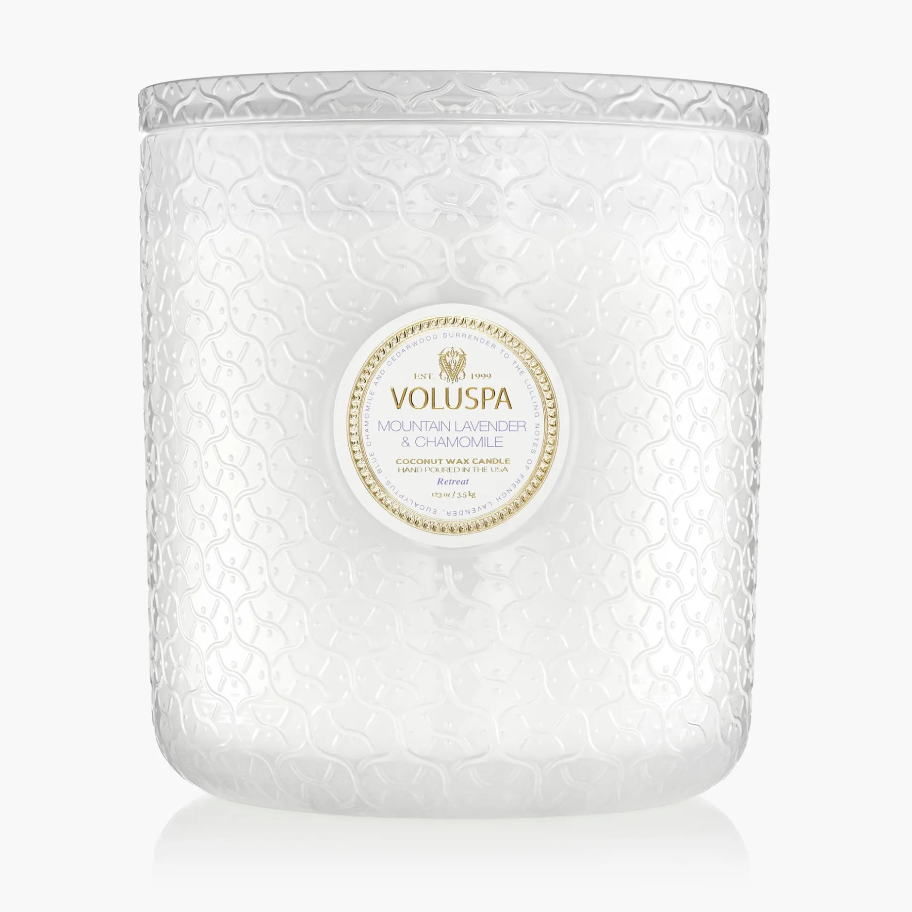 Voluspa’s unique coconut wax blend is housed in a 123 oz. glass vessel adorned in Maison pattern and is topped with a matching lid that keeps the candle dust-free when not in use. The multiple wicks allow you to enjoy fragrance throw for 250 hours. Our candles are handcrafted in the United States and feature our proprietary, clean-burning coconut wax blend and natural wicks. Our products are free of phthalates, parabens and sulfates and are never tested on animals. Up-cycle this best seller into a keepsake after the last burn.