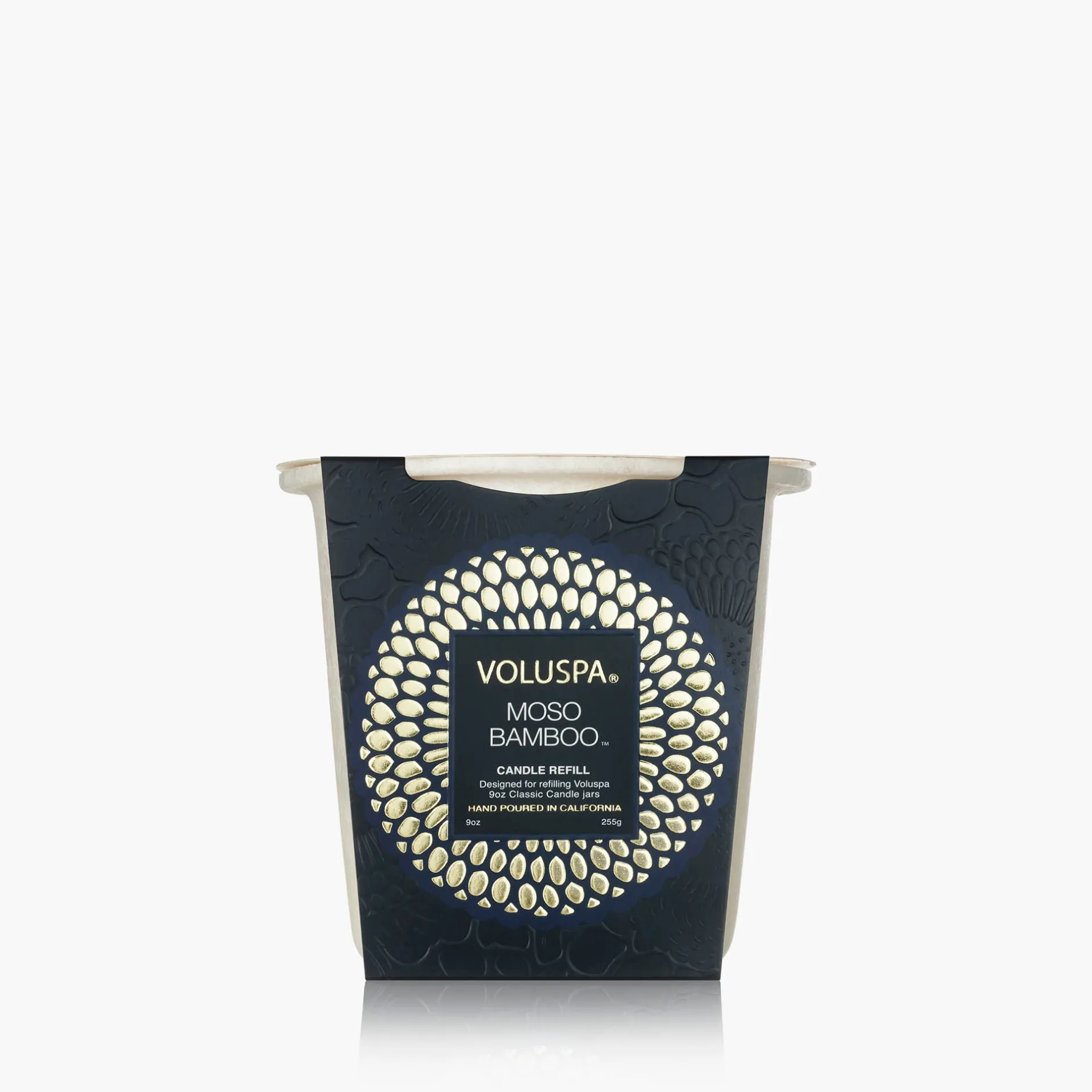 Curb your olfactive appetite for your flourishing fragrance addiction. Invite an additional 60 hours of your beloved 9oz Voluspa fragrance without the frills. After your candles final flame, go straight to the source, simply drop in the coconut wax Candle Refill. We’ve pioneered a candle refill that leaves no trace. Our custom designed refill cups are made from 3 simple ingredients: starch, fibers and water— making it 100% biodegradable. Outer Packaging is 100% recyclable.