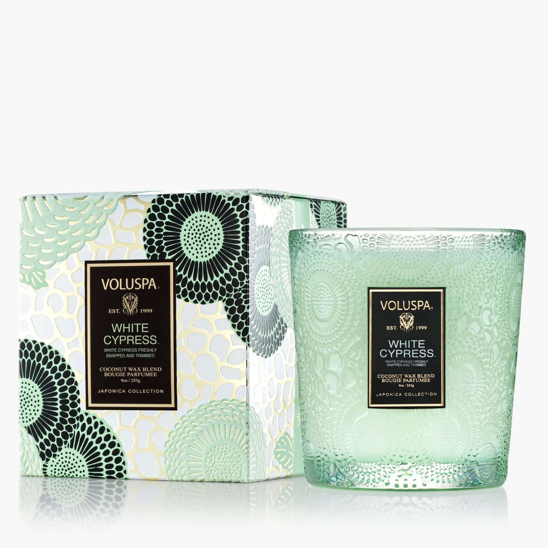 White Cypress, a classic yet contemporary Holiday scent, captures a crisp walk in the winter woods. Frosted Bergamot and Minty Snowdrops perfectly envelop freshly cut Evergreen Cypress boughs and snow-kissed Sugar Plum. Bask in its glow while staying cozy inside