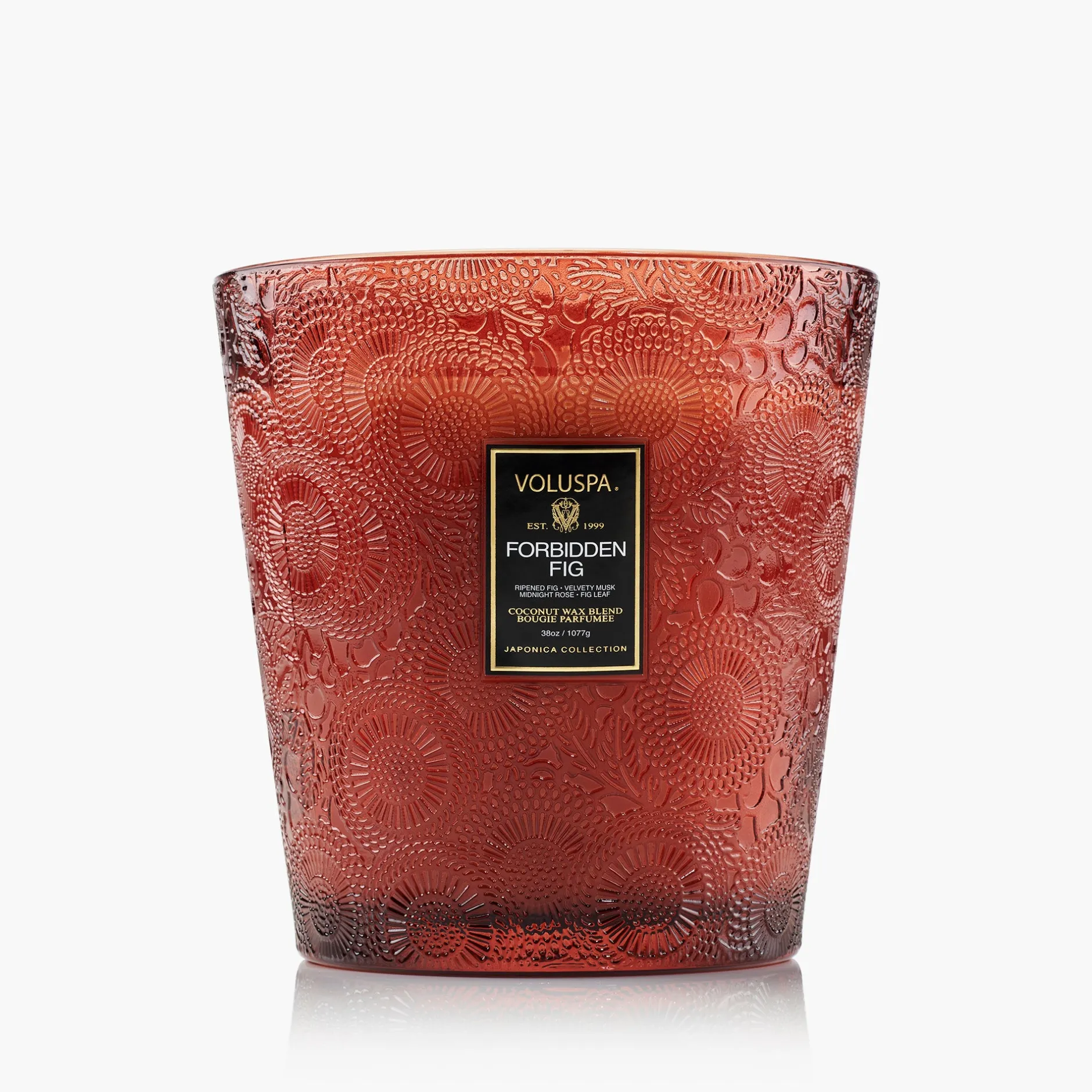 Voluspa’s unique coconut wax blend is housed in a 38 oz. embossed glass jar with decorative gift box. Our three wicks allow you to enjoy fragrance throw for 80 hours. Our candles are handcrafted in the United States and feature our proprietary, clean-burning coconut wax blend and natural wicks. Our products are free of phthalates, parabens and sulfates and are never tested on animals. Up-cycle this best seller into a keepsake after the last burn.