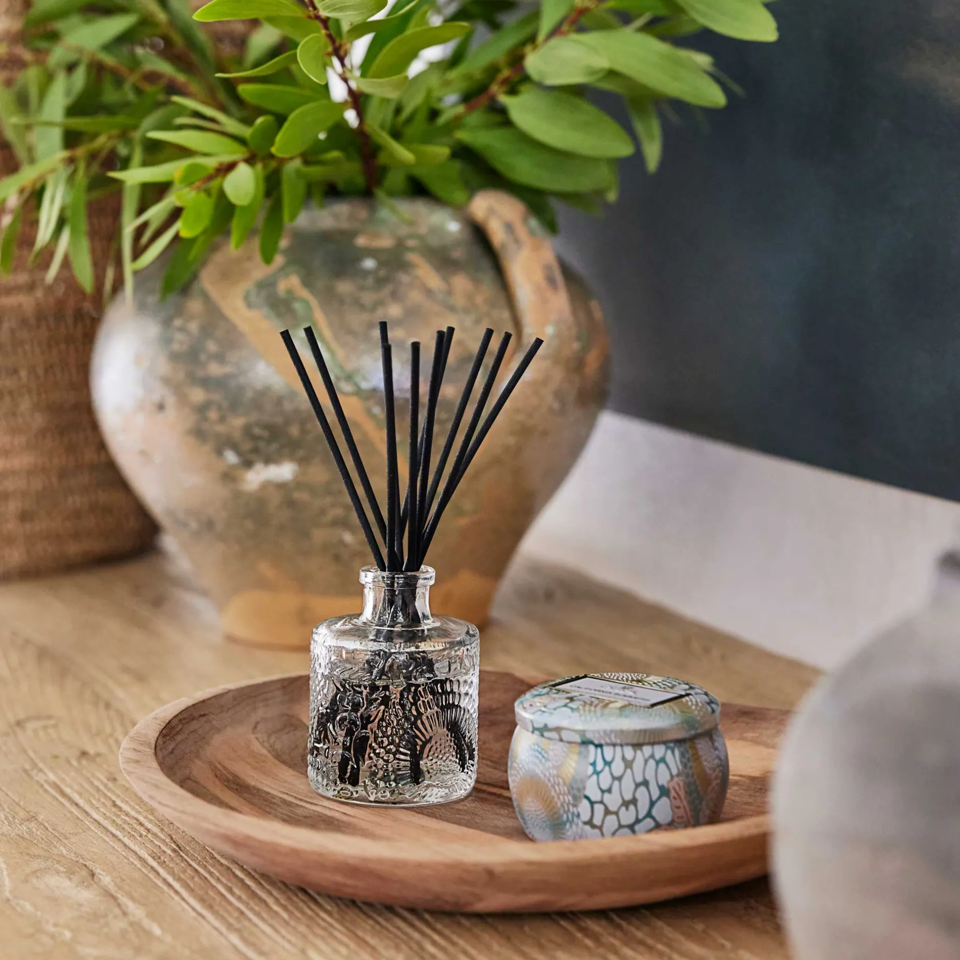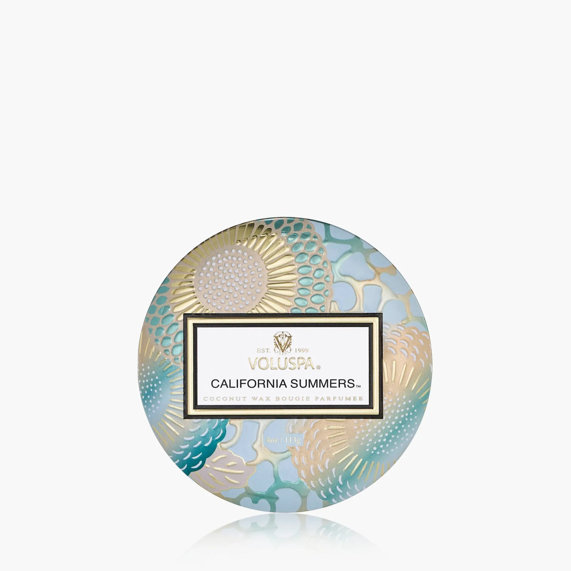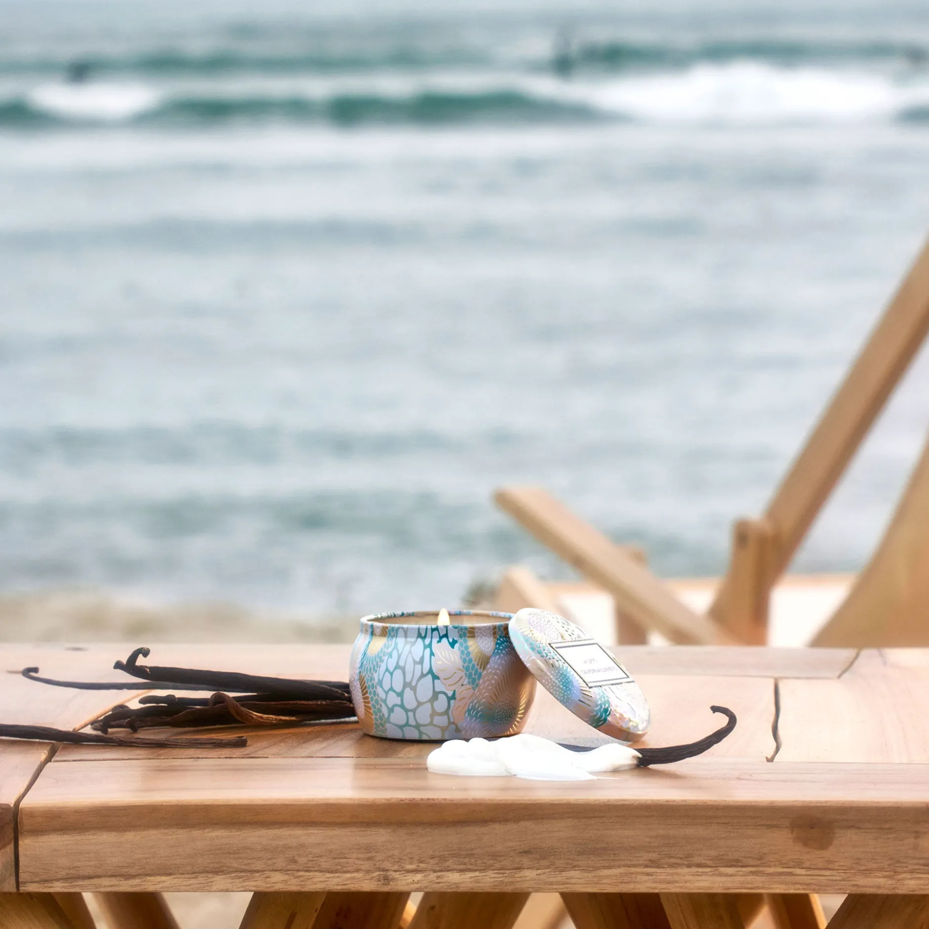 Plunge into the blue horizon and escape into another realm, where worries are reduced to coasting on hypnotic rolling waves. A salty ocean breeze tickles the skin as the sun reaches its peak height of the day, leaving you to bask in a teakwood sling chair, lathered in a tonic of warm vanilla and coconut milk. Welcome in the rising tides to wash away the cares of the day. Voluspa invites you to take the scenic route, so you may always return for California Summers.