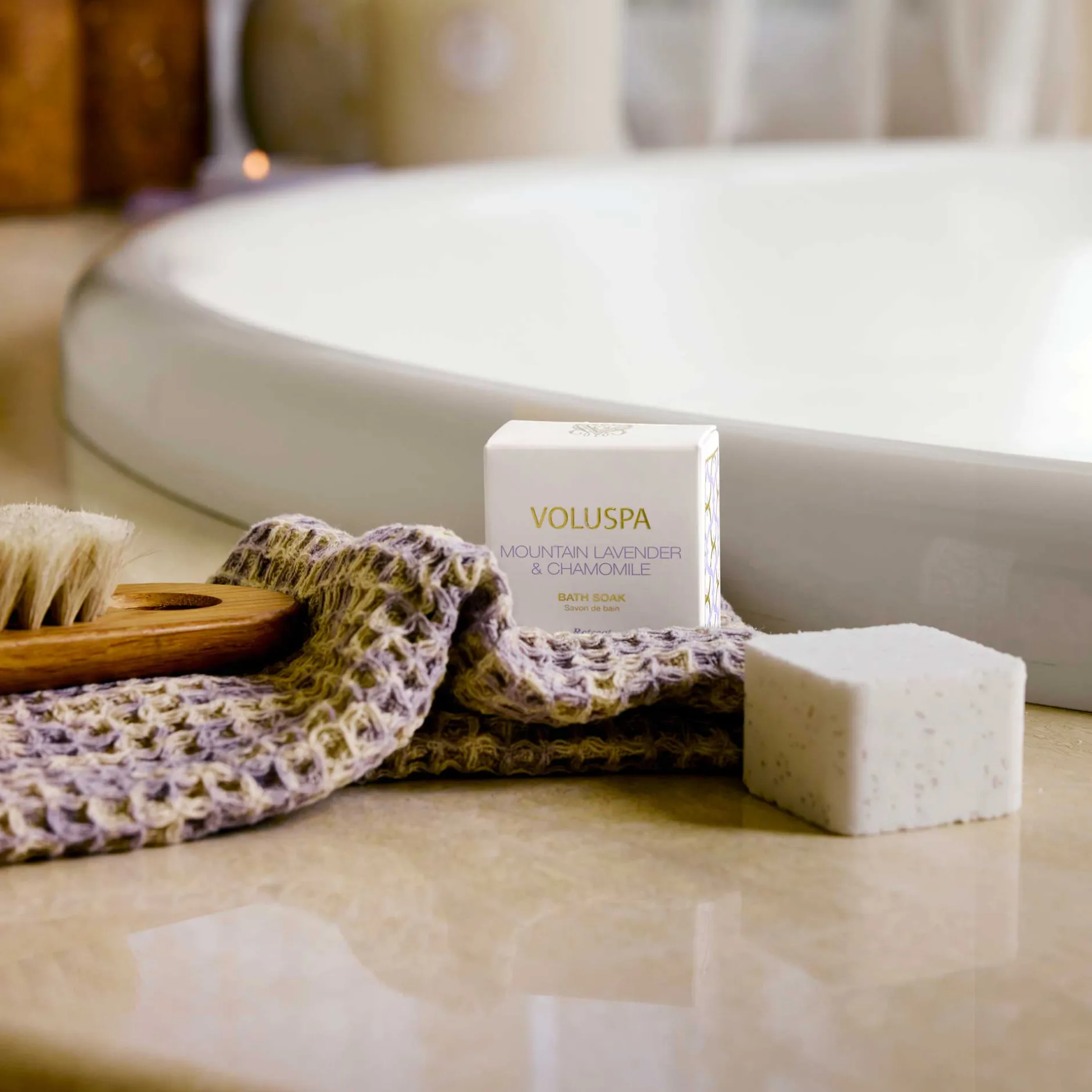 Fill your bathtub with warm water. Unwrap the 4.5 oz bath soak before dropping it in. Take a deep breath, light a candle, silence your phone (or at least leave it on the counter) and relax…