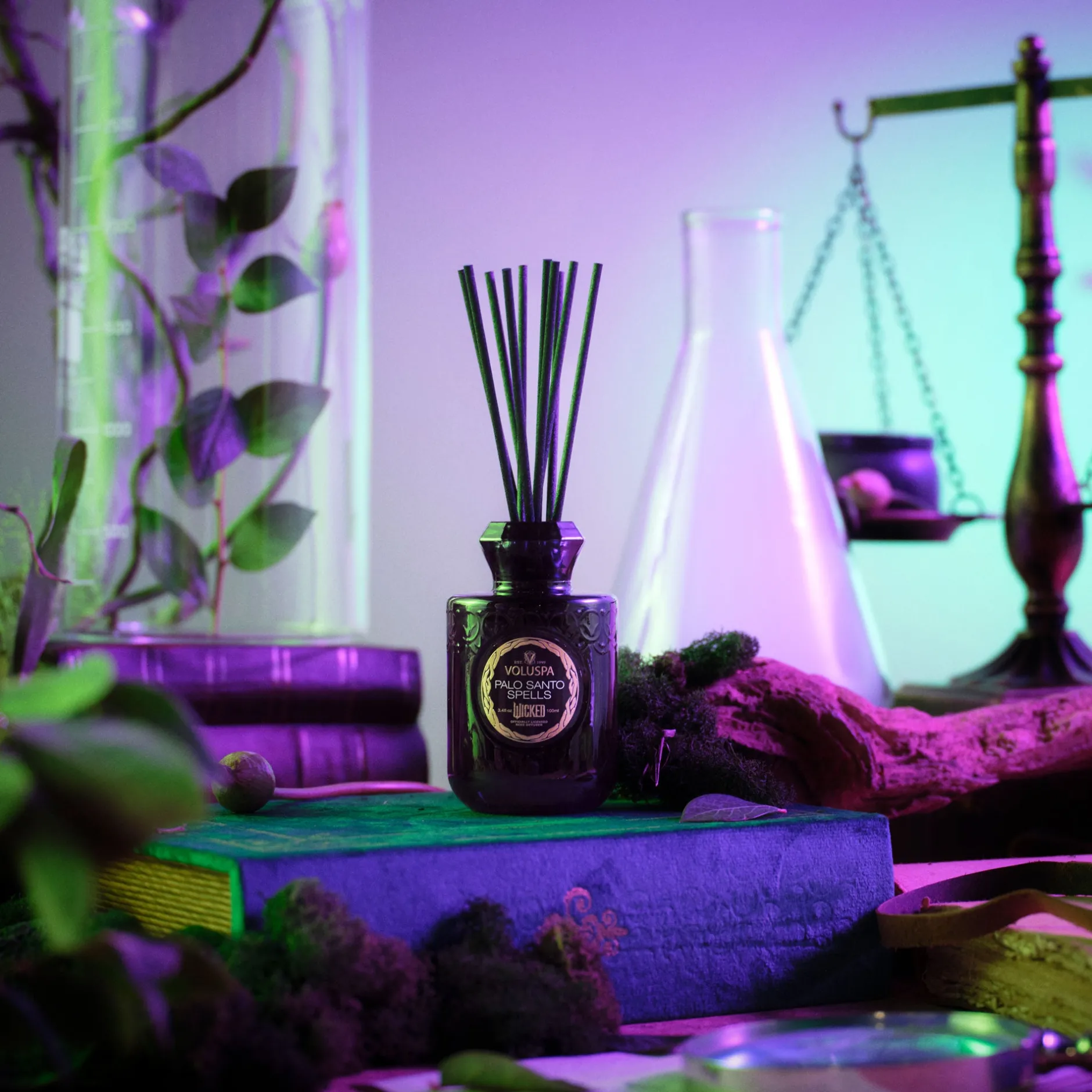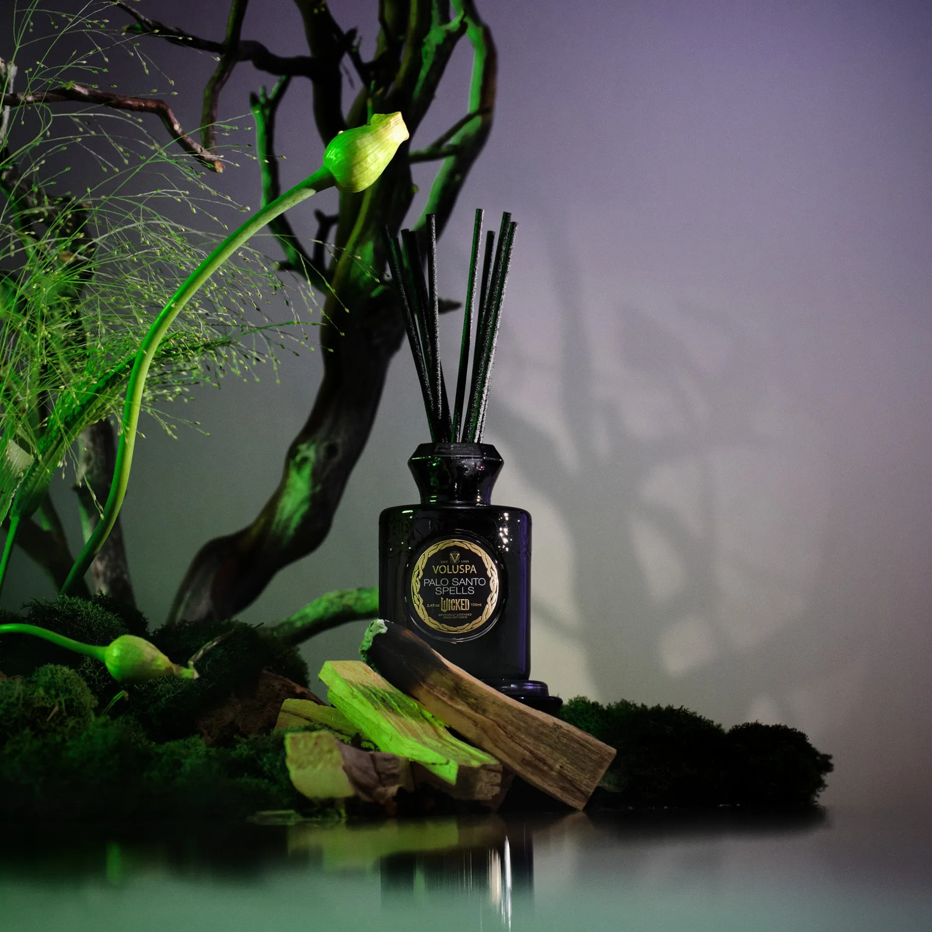 Make dreams take flight with a wickedly wonderful olfactory potion to lift your senses and make them soar! Find your inner emerald spark with notes of Crushed Clove, Palo Santo, Smoldering Incense and Mountain Oak Moss. A wild and untamed canopy of fragrance that sets the stage to unleash your inner magic. Defy expectations with Palo Santo Spells.