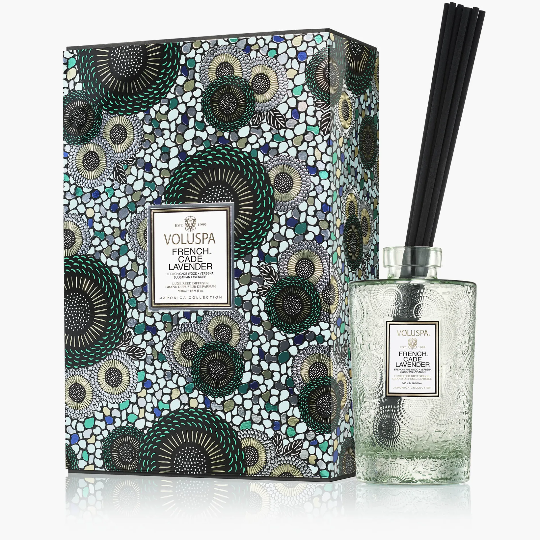 Designed using 8 wide gauge, black high absorbency reed sticks, the 500 ml larger-than-life Reed Diffuser is perfect for larger spaces. Signature Japonica fragrances captured in elegantly embossed glass, for an always-on ambiance.