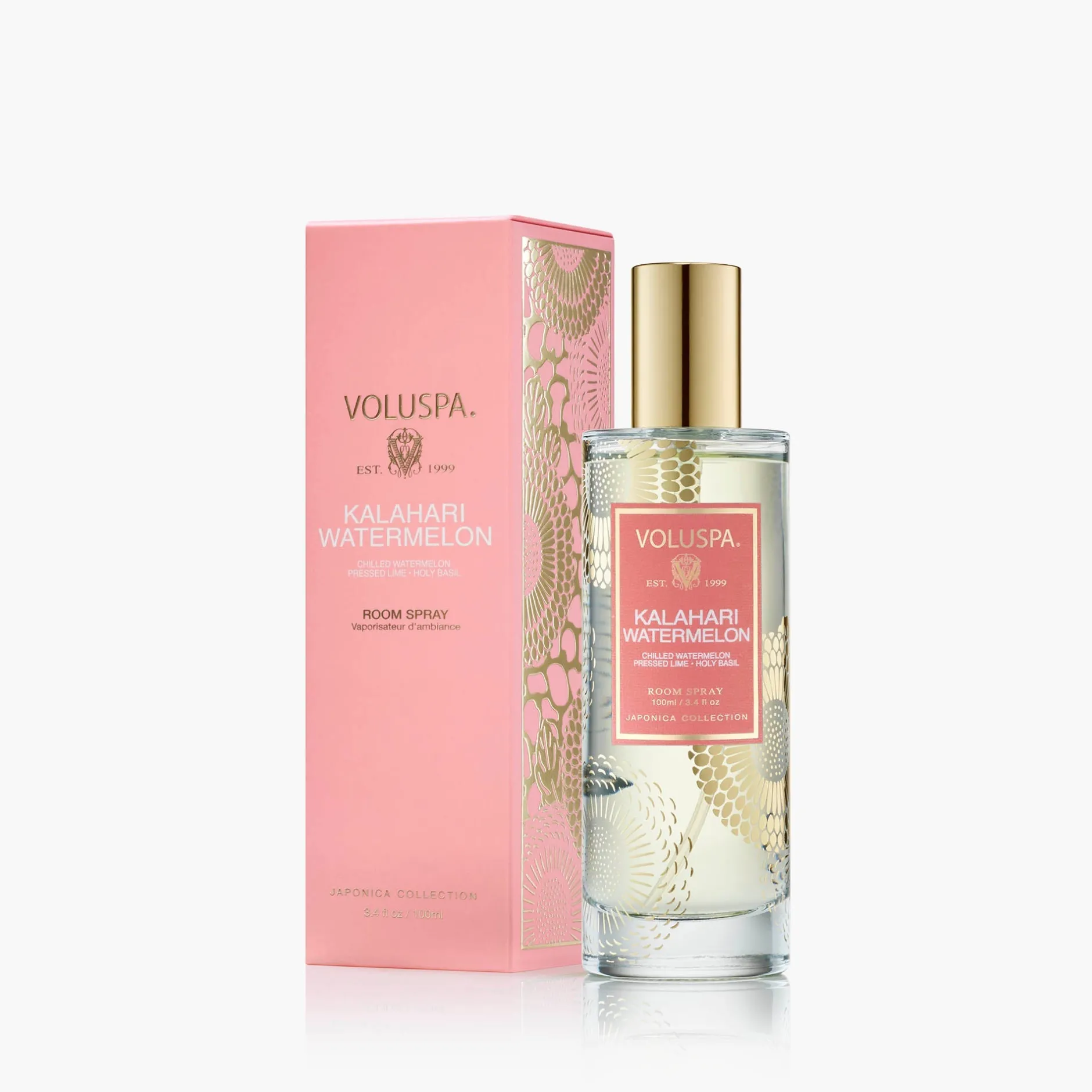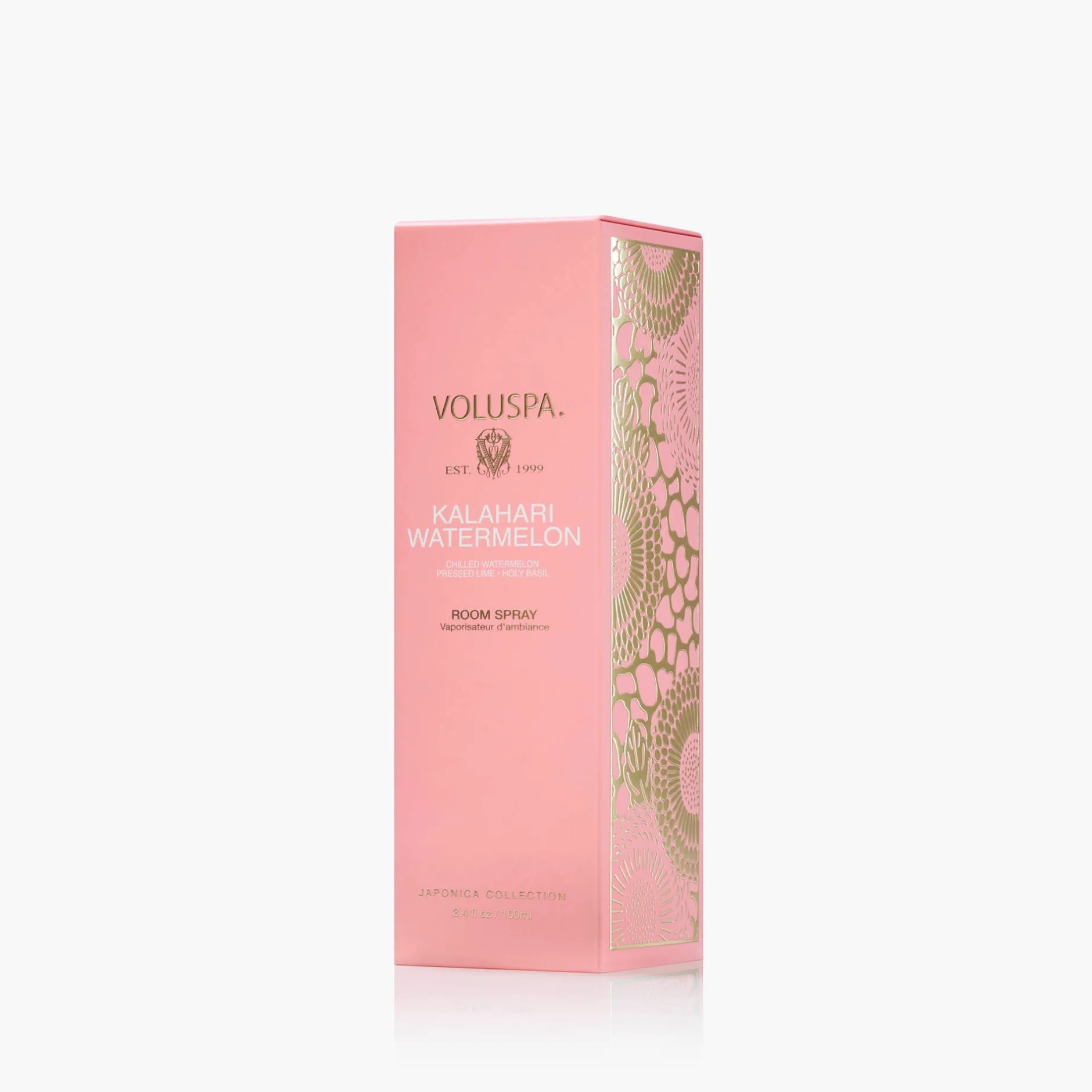 Refresh your space with Voluspa’s aromatic room spray. A burst of flameless fragrance wherever you need a lift. Our fragrant room spray is housed in a glass vessel with gold accents for a subtle pop.