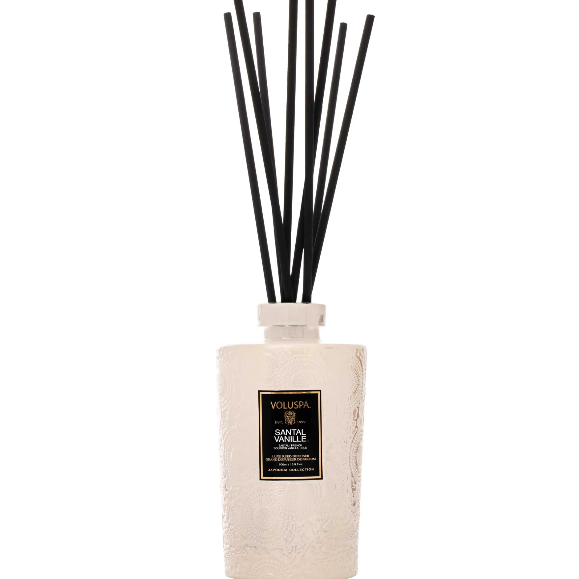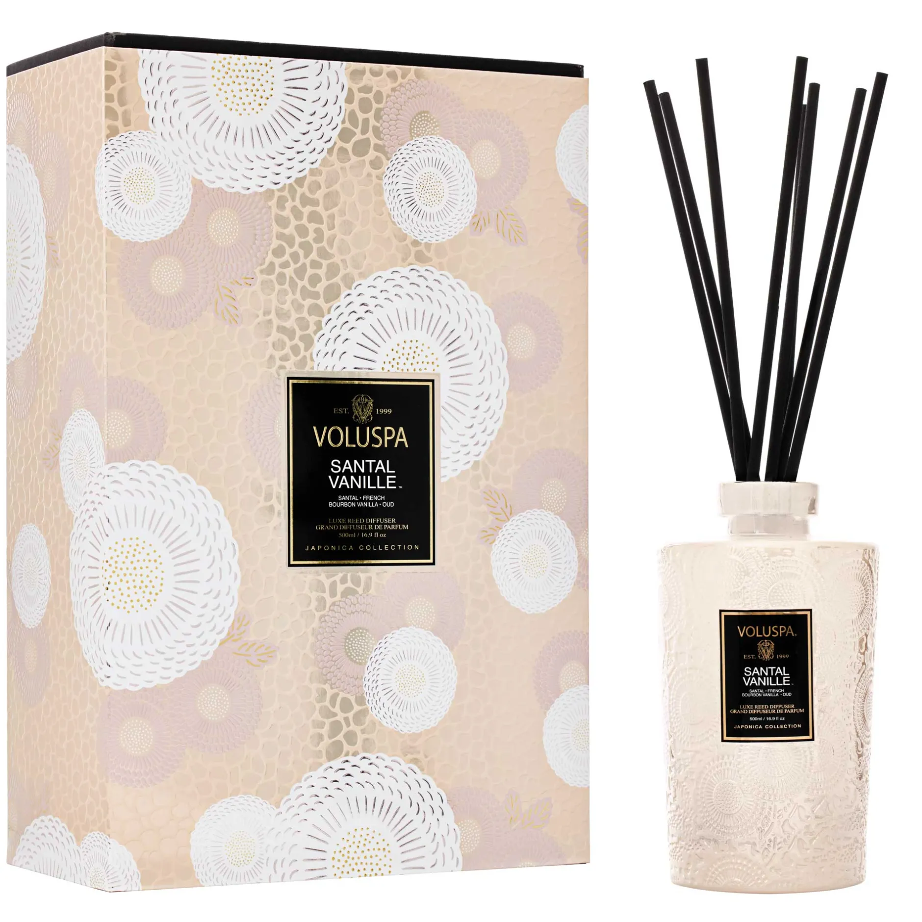 Designed using 8 wide gauge, black high absorbency reed sticks, the 500 ml larger-than-life Reed Diffuser is perfect for larger spaces. Signature Japonica fragrances captured in elegantly embossed glass, for an always-on ambiance.