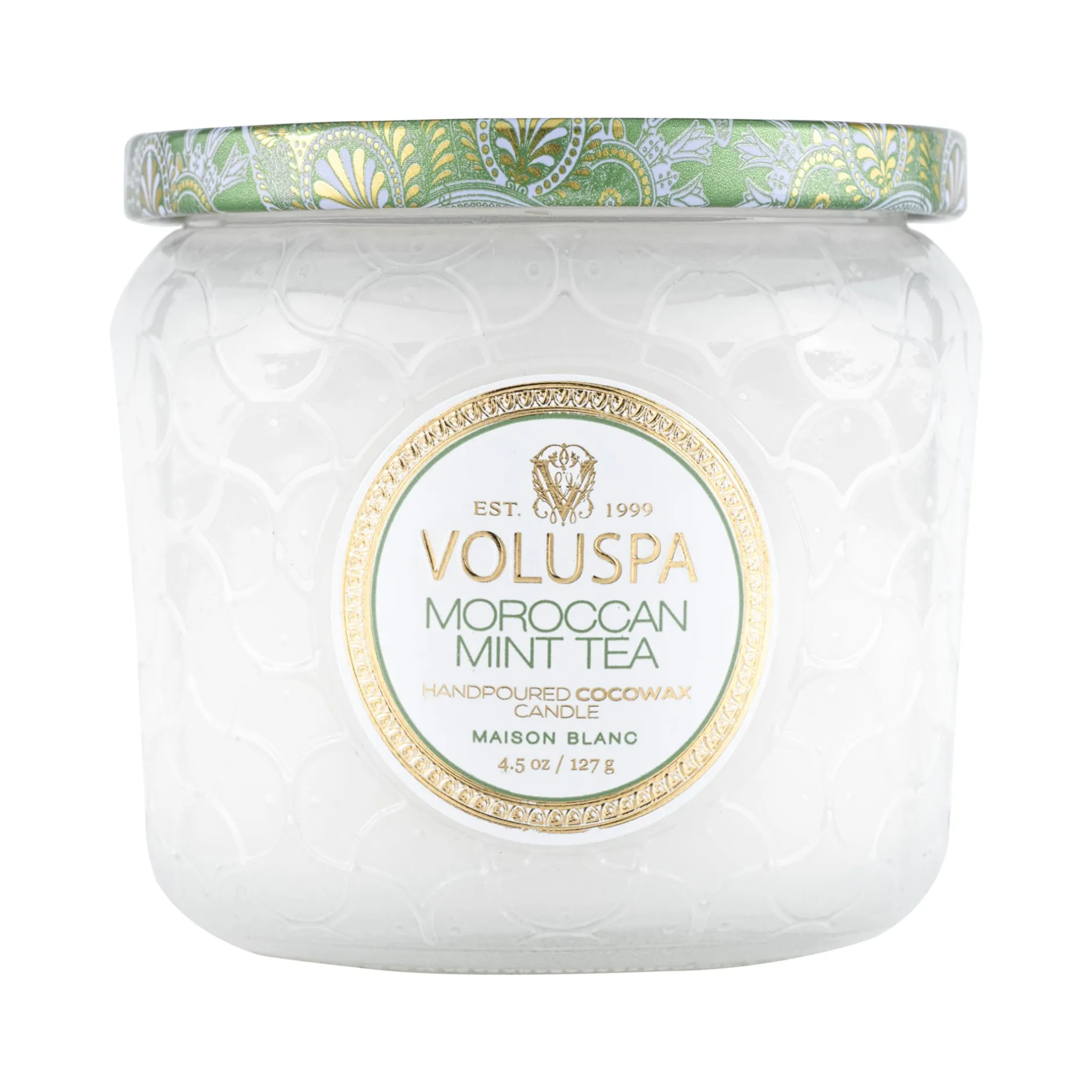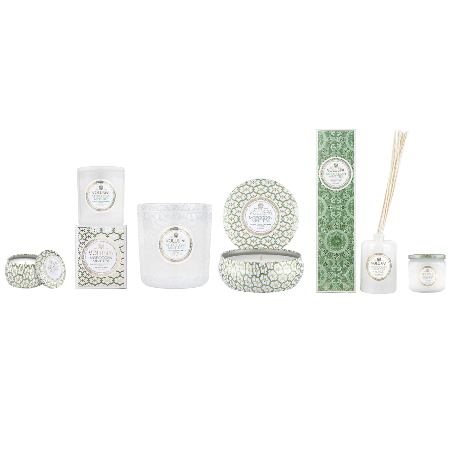 Welcome relief from the desert heat, Moroccan Mint Tea blends crisp, cool citrus and green spearmint with an intriguing floral heart of linden blossom, neroli, jasmine and ylang ylang. Instantly invite serenity with a hint of pleasant euphoria, the added infusion of gunpowder green tea, blackcurrant and effervescent ginger creates a breezy journey for armchair travelers and beyond.