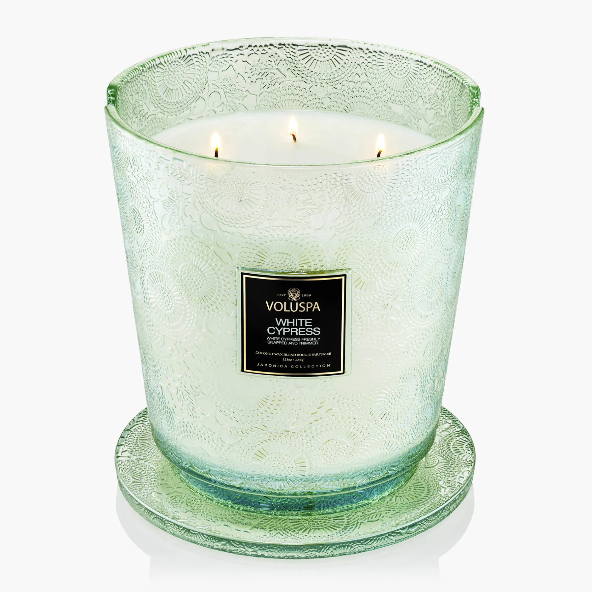 Voluspa’s unique coconut wax blend is housed in a 123 oz. embossed glass vessel and topped with a matching lid that keeps the candle dust-free when not in use. Our five wicks allow you to enjoy fragrance throw for 250 hours. Our candles are handcrafted in the United States and feature our proprietary, clean-burning coconut wax blend and natural wicks. Our products are free of phthalates, parabens and sulfates and are never tested on animals. Up-cycle this best seller into a keepsake after the last burn.